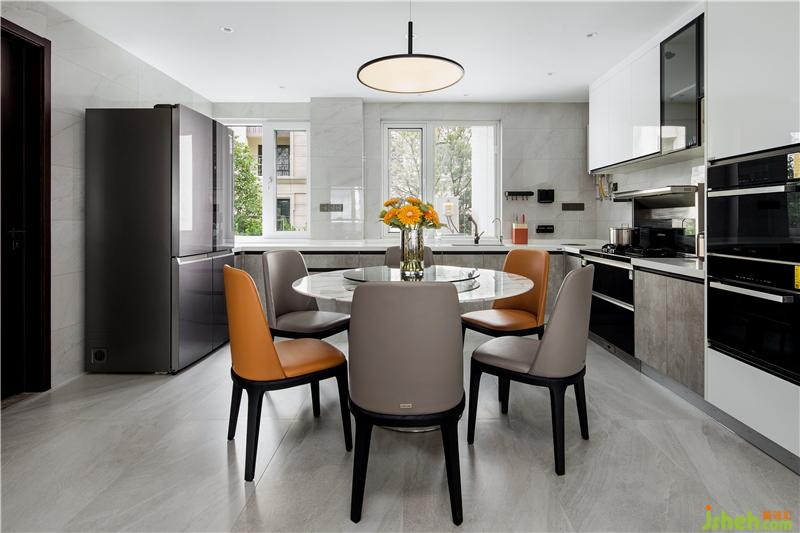 開放的社交廚房有利于增進(jìn)家人之間的交流,媽媽做飯孩子也可以幫忙,沙發(fā)上的爸爸也可以幽默幾句。最好的藝術(shù)來(lái)自于生活中的柴米油鹽。