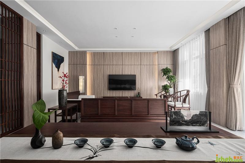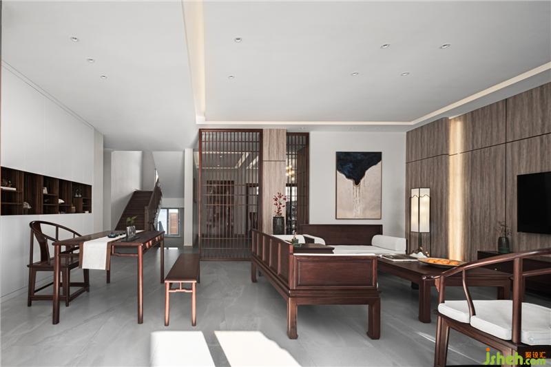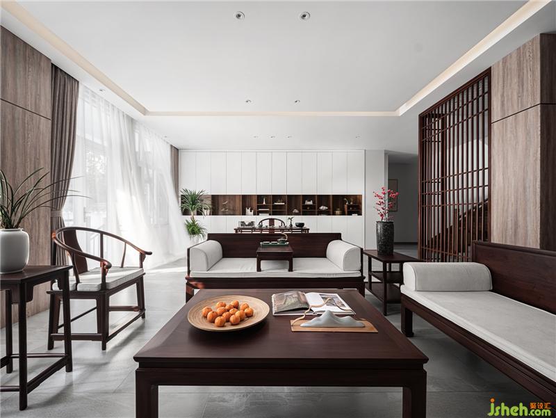 祖宗先輩造櫥立柜,沒什么復(fù)雜的智巧,總以多容善納為務(wù)實(shí)。如果客廳櫥柜,采用中式古典通用顏色,則會給人闊壯高大,過于端莊深沉的壓抑之感,雖富貴華麗,別墅裝飾卻缺乏家的親和溫寧。而由中間隔斷,劃出一檔中式古典風(fēng)味的多寶閣來,多寶閣分為大小格數(shù),一如“百眼櫥”,不僅所有藏之一目了然,更彰顯了設(shè)計師化古板為靈巧的創(chuàng)新。