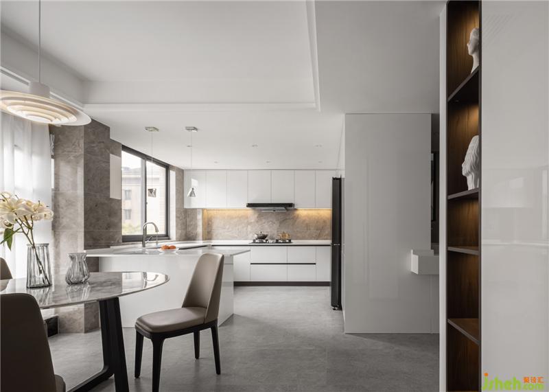潔白的社交廚房,呈現(xiàn)出一種冰冷的氣質(zhì),干凈中透出溫婉的生活氣息。設計過程中我們對色彩的調(diào)配與追求,不亞于在畫布上反復琢磨每一筆顏料的彩度與形狀。只是比畫畫更復雜,更小心翼翼。南京裝修設計甚至連地面與墻面的反射度,都要反復的做思想實驗,一遍遍在腦海中勾畫出場景,再付諸實施。