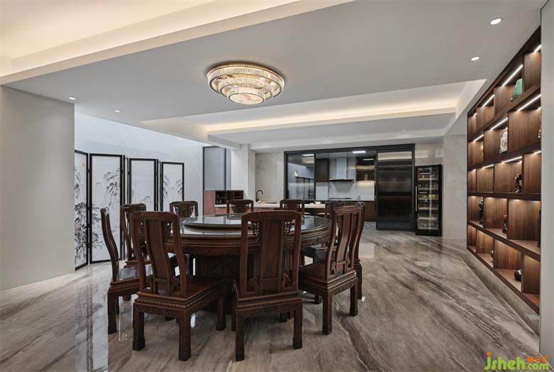 餐廳南面白色墻板設(shè)計了酒窖的隱藏門