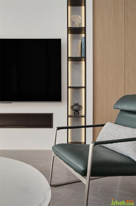 主題電視墻面設(shè)計(jì)出兩列細(xì)長(zhǎng)的裝飾架