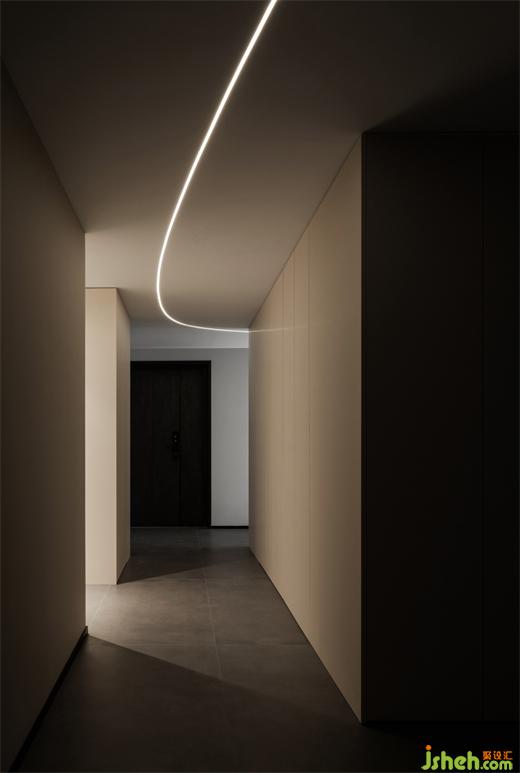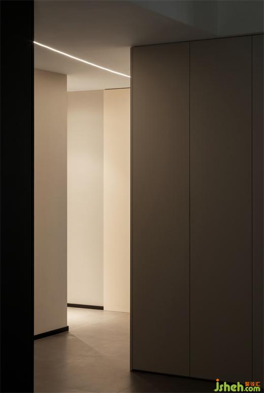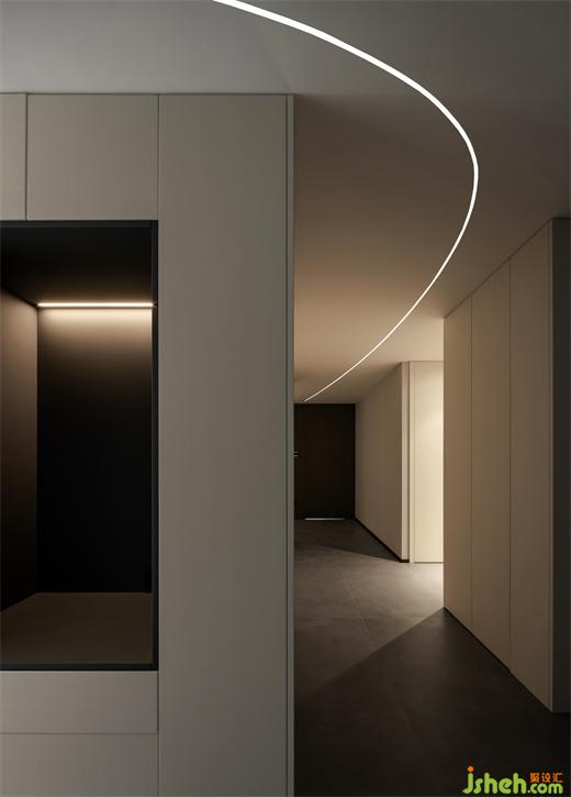 入戶開始,就用極簡柜體構(gòu)建出了深邃悠遠(yuǎn)。可以閑步游走,在走廊的每個盡頭發(fā)現(xiàn)驚喜。