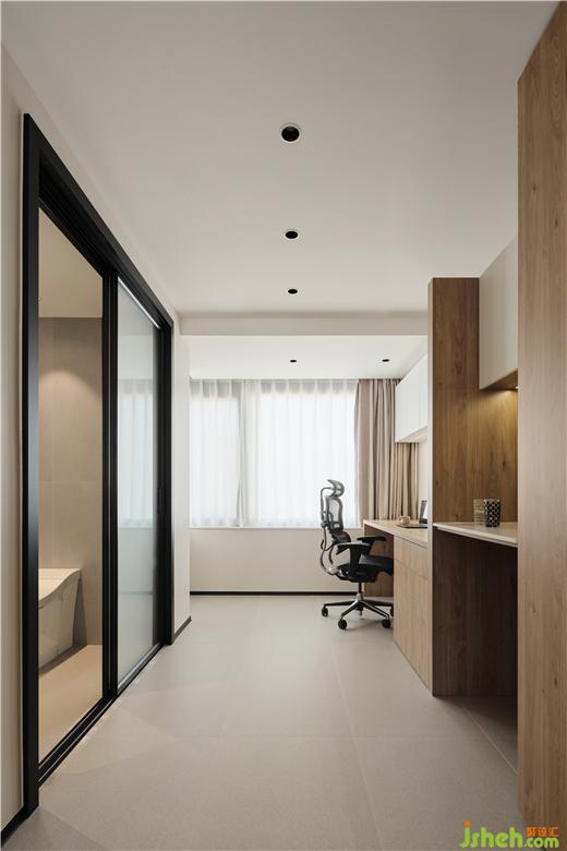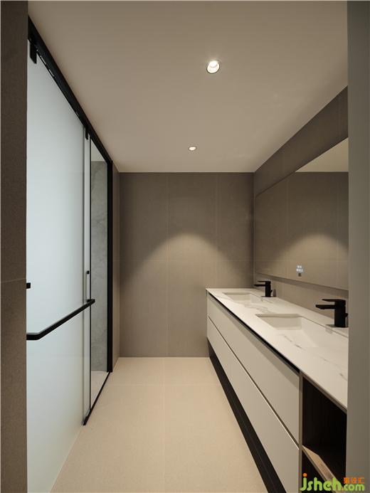 本案多處運(yùn)用平直的幾何塊面轉(zhuǎn)折空間的光影,讓居住者體驗(yàn)到有意識(shí)的空間形變。