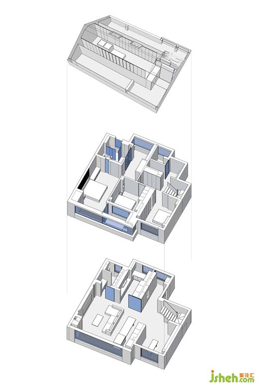 The white steel plate stair handrail echoes the sculpture of the restaurant. It presents the temperament of snow mountain beside Baikal Lake. At the entrance of the stairs, there was originally a protruding column, which was designed with a slope turning shape to create a sense of ritual.In this case, the light and shadow of the turning space of the flat geometric block surface are used in many places, so that the residents can experience the conscious space deformation.