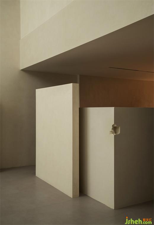 大廳的立面猶如被開天之斧劈就而成,展廳設(shè)計(jì)直挺的塊面利落干凈,整個(gè)空間高大俊朗地立起來。