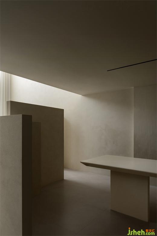 微水泥效果的桌體,在曙光般的光影下,極具意大利的深沉與典雅。