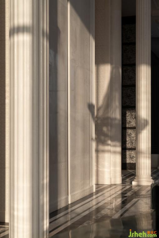 中心水吧區(qū)借鑒法式建筑的感受,逾兩萬六千朵山茶花雕刻圖案,鋪陳詩意浪漫的夢(mèng)幻篇章。土耳其石材自然清雅的質(zhì)地,罩染上一層寧靜、雅致而明澈的底色。陶立克柱式,含蓄地將法式古建美感引入場(chǎng)內(nèi),結(jié)合現(xiàn)代設(shè)計(jì)營造,促成感受的共相,讓人同環(huán)境產(chǎn)生微妙共振。