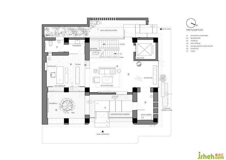 一層平面圖,F(xiàn)loor plan of first floor: ©本哲建筑
