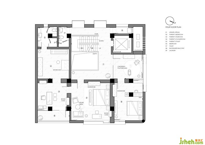 四層平面圖,F(xiàn)loor plan of fourth floor: ©本哲建筑