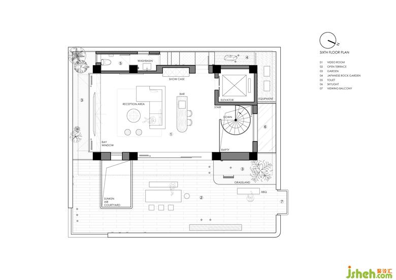 六層平面圖,F(xiàn)loor plan ofsisth floor: ©本哲建筑