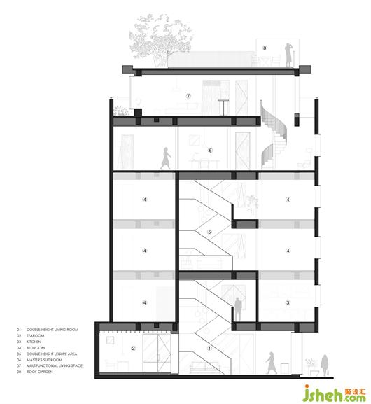 五六層剖面圖,a cross-section of five or six floors: ©本哲建筑