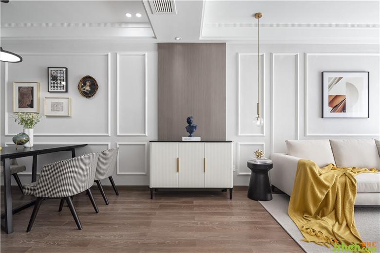 多種材質(zhì)的運(yùn)用讓空間層次感更加豐富,科定板,晶瓷畫,千鳥格紋樣等無(wú)不透露出整個(gè)空間的精致感和時(shí)尚感。裝修設(shè)計(jì)