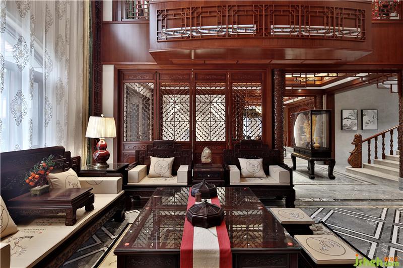 客廳極具中式風(fēng)格的配色,和中式的家具,喚醒人們深藏的記憶和文化認(rèn)同。大理石浮雕畫作背景墻,獨具東方韻味,實木古典家具充滿歷史的質(zhì)樸與厚重。裝飾燈線條干練簡潔,是古典和現(xiàn)代的結(jié)合。