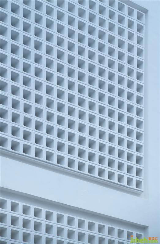 橫向外立面用空心磚搭建方式處理,就像在盒子上開一些小洞,巧妙的引入自然光,為整個(gè)室內(nèi)空間帶來出其不意的效果。