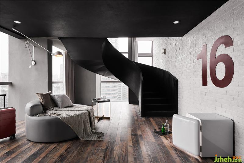 酒店就在這樣一個大環(huán)境之中,隱藏于樓宇之間。它原始的建筑狀況跟大多數(shù)的loft公寓一樣,雖然有較為充裕的層高關(guān)系,但整體空間仍然狹小。再加上酒店部分只占整層樓的3/5面積,所以,在處理空間關(guān)系上,我們必須解決酒店在視覺與空間使用動線上的獨立性。以此幫助酒店呈現(xiàn)出更加完整的視覺與體驗效果。好在較高的樓層關(guān)系給整個建筑創(chuàng)造了良好且充足的日照條件,這為后期的效果呈現(xiàn)給予了一定的幫助。