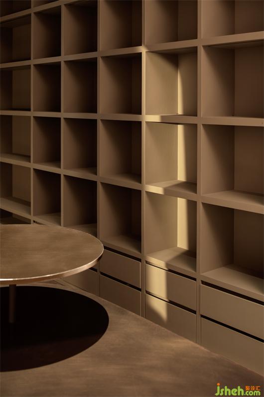 奢侈品商店設計環(huán)形的通道,讓“逛”的購物體驗在本不算大的室內(nèi)空間里得以保證。同時,當你跟著我們預設好的路線,進入到商店最里面時,你會發(fā)現(xiàn),圓柱體被打開了一道口子,在這圓柱體的“身體”里,有一顆可以“呼吸”的“心臟”。這是我們的一處小心思,也是給予消費者的一個驚喜,更是我們對于「壹臻」生命力的期望。一顆閃爍的山城之心。