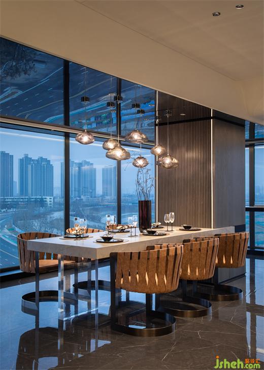 鄭州豪宅設(shè)計(jì)師重新定義室內(nèi)空間關(guān)系,摒棄傳統(tǒng)功能布局,鄭州豪宅設(shè)計(jì)將客廳、餐廳、書房、西廚功能組合,模糊各功能空間的邊界,營(yíng)造一種開合俯仰之美。傳承千百年的用餐禮儀在此華麗上演,居者享受四季饋贈(zèng)的人間至珍。
