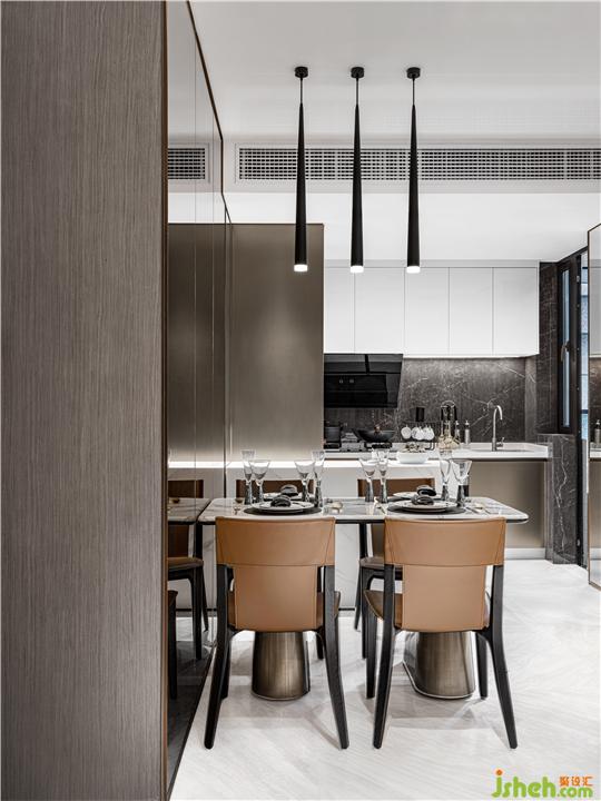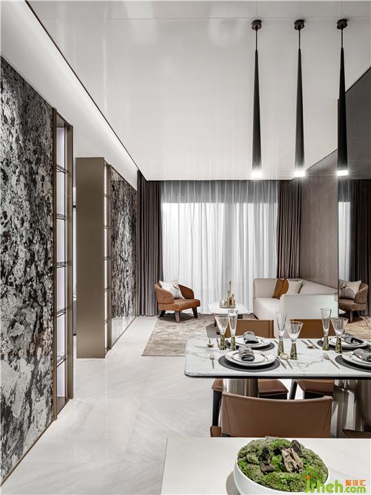 空間如畫,設(shè)計(jì)師認(rèn)為在節(jié)奏飛快,鋼鐵水泥建造的大都會(huì)城市,樣板間設(shè)計(jì)師有必要讓生活變得更加詩意從容,讓更多的人放慢腳步,去感受、去體會(huì)詩和遠(yuǎn)方,在空間設(shè)計(jì)中,植入天然大理石畫面,連同客餐廳,氣勢如虹,猶如一幅東方意境的山水文人畫,仿佛穿越回那個(gè)每個(gè)人心中都有一片山水的時(shí)代