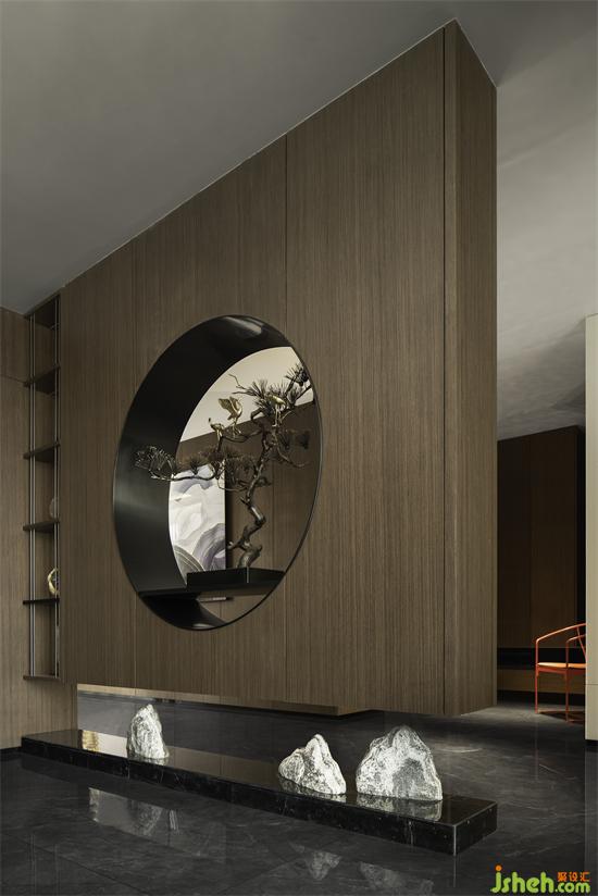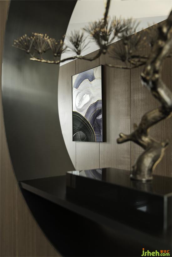 玄關(guān)從細節(jié)處著墨,讓藝術(shù)融入真我。住宅設(shè)計用藝術(shù)畫、山石和綠植等元素彰顯主人的審美品味。