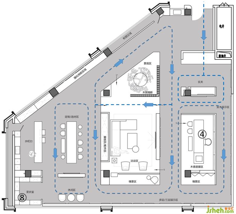 景觀區(qū)是入戶與展廳間的過渡
