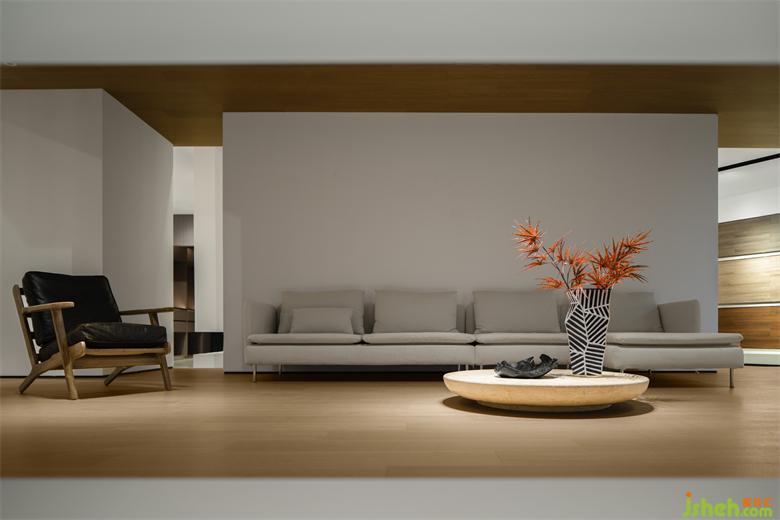 洽談區(qū)將極簡、自然的侘寂風(fēng)一以貫之