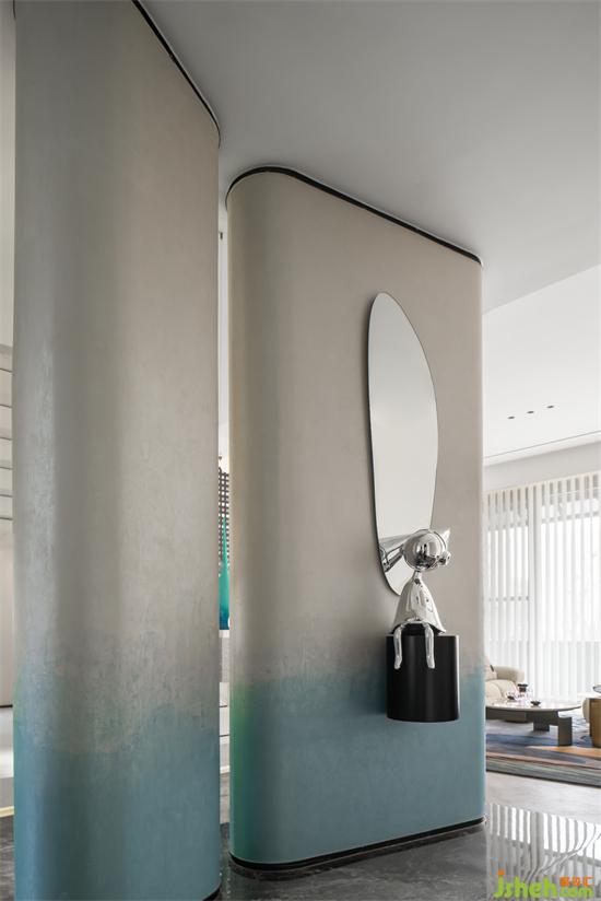 入戶玄關(guān)用兩組造型墻做隔斷