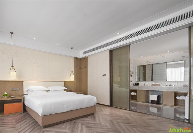 The hard decoration design of the guest room shows the minimalist and tough style with warm log material paving, which meets the best coherence point of inspiration between contemporary and traditional. The deluxe king bed room is inspired by the quicksand scenery of Longquan shoal, which embodies the picture of surging sand as a giant mural, covered in the background of the bed of the room. It not only gives tourists a spiritual shock, but embeds the strong impression of Guizhou into their memory, so as to realize the unity of natural interest and humanistic spirit.