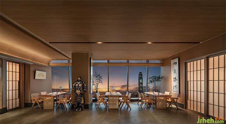 深入解讀晴舒,除感受美食匠心外,更須精神與文化的雙向奔赴。餐廳位于最繁華的皇崗商務(wù)中心皇庭V酒店53層,優(yōu)越的地理位置可將城市夜景一覽無余。深圳晴舒料理設(shè)計師借由巧妙分區(qū),最大限度地將外景納入室內(nèi),使食客或沉浸于板前燈火,或流連于窗外風(fēng)物,在自然景物的表達(dá)與追述之間感受空間情緒的微妙變化。