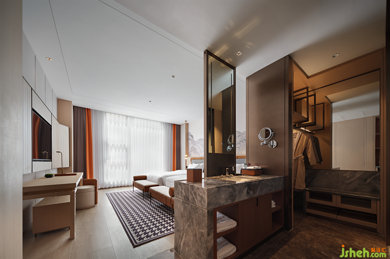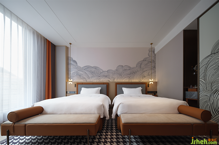 酒店是羈旅的港灣,凝縮著游者對一座城市的期待與想象。因而在房間的設計上,既要注入在地風俗傳統(tǒng),也須在設計中保留親和熟悉的元素,本案酒店設計將民族器物組合為特色裝飾,把段氏紋樣繪入建筑的線條和肌理中,結合品質軟裝,恰如久別的老友以最富文心的禮物款待遠道的嘉賓。