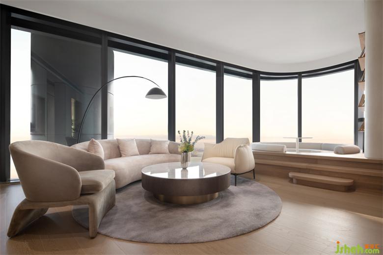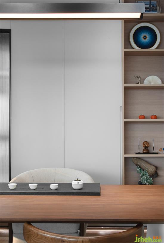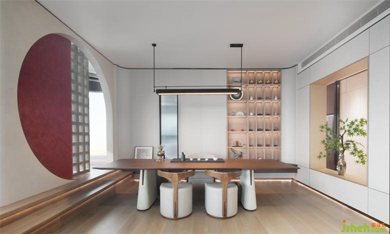 在空間的融合之間,感受東西方文化的微妙差異,一側(cè)是東方品茗歡言,一側(cè)則是現(xiàn)代簡約的情境體驗,珠寶展廳設(shè)計在闊景框窗的光影基調(diào)中營造優(yōu)雅的空間秩序,謙懷自然通感而生,滌蕩出靜謐的美學(xué)內(nèi)核。