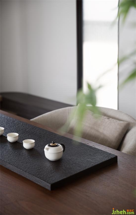 茶空間彰顯東方茶韻,緩慢的節(jié)奏與韻律激發(fā)起人們對于美感的無限聯(lián)想。鏤空的磚墻使室內(nèi)空間更有層次,增強(qiáng)了空間流動性與光線穿透性的同時,也弱化了空間的獨立性。珠寶展廳設(shè)計通過對一處微小境地的創(chuàng)作表達(dá),達(dá)到東方與西方、自然與現(xiàn)代物我交融的心靈狀態(tài)。