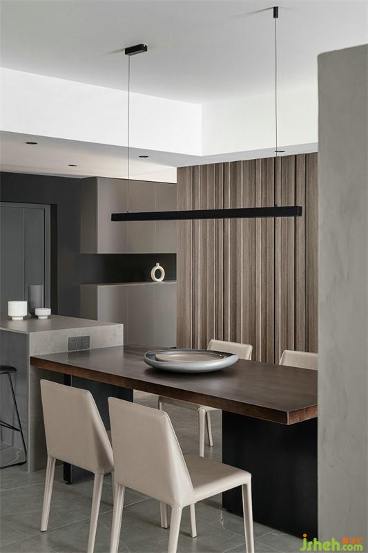 島臺(tái)與餐桌的一體式設(shè)計(jì),營(yíng)造了融融的會(huì)客式餐廚空間。LDK一體化生活情境,讓家的氛圍更濃烈更溫馨。