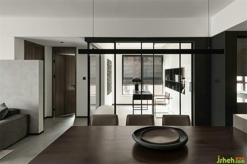 The creation of more open spaces makes it possible for the dining room and the living room to be linked. The choice of transparent glass doors also drives the interaction between the dining room, living room and the study; no matter where the family is active, they can always find him (her) when they look up. After the reorganization of the entire space, the dining room and kitchen, the living room, and the study can be seen. The space scene has been enriched, making the home more possible...