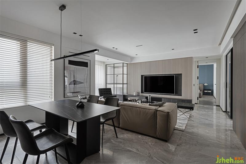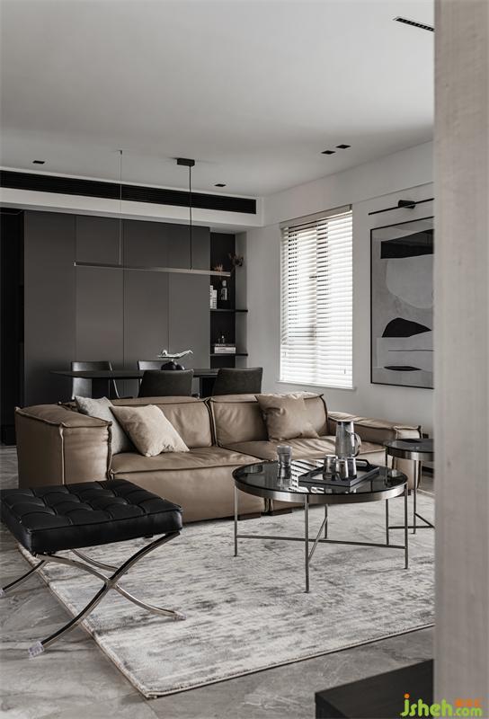 客廳家具定位和選材上,注重舒適體驗;沙發(fā)的寬軟可以讓你獨處,讓你自由釋放。餐廳邊柜開放式設(shè)計與白色百葉窗呼應(yīng),讓餐廳變得更敞亮又舒心。隨手可放一書一茶的不銹鋼邊幾,讓空間顯得安靜且質(zhì)感。繁忙的午后,沏一杯咖啡,看一本書,內(nèi)心歡愉又充盈。