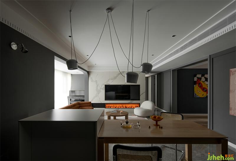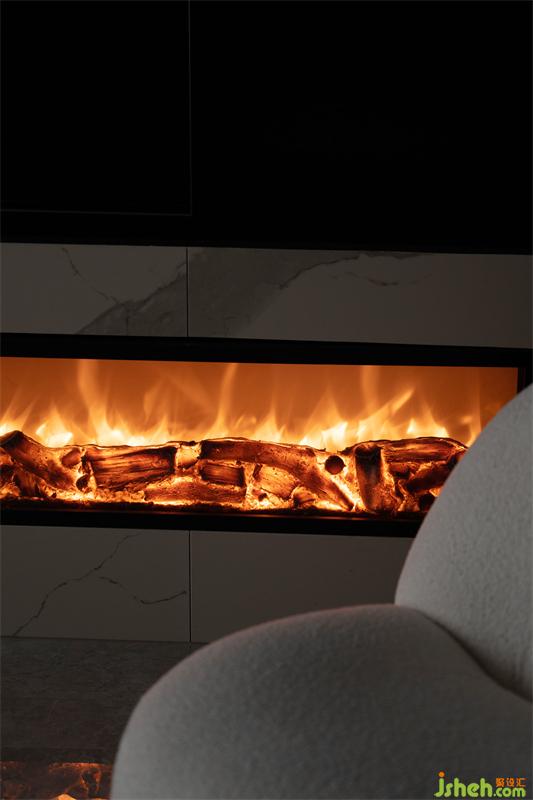 精裝房改造客廳原有頂面拆除,無主燈設(shè)計(jì)增加光源的同時(shí)安裝風(fēng)管機(jī),家具軟裝我們多選用暖色調(diào)打造時(shí)尚空間。巖板電視墻是男主人指定的材質(zhì),巖板質(zhì)感、壁爐為空間增加一絲暖意。