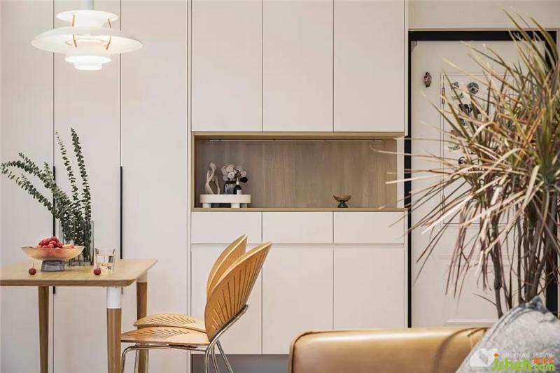 我們打通廚房、陽臺,打造開放式大廚房;將次臥改為書房兼客臥,用玻璃門代替墻體,獲取充足采光;L型儲物柜聯(lián)動玄關(guān)、客餐廳,解決收納難題……實(shí)現(xiàn)60㎡小戶型顏值、功能雙逆襲!