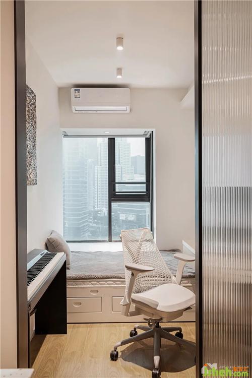 大幅落地玻璃窗引入自然光線,藤編躺椅休閑感十足,寒冷的冬日,沐浴著輕暖的陽光,深圳公寓裝修設(shè)計(jì)愜意至極。