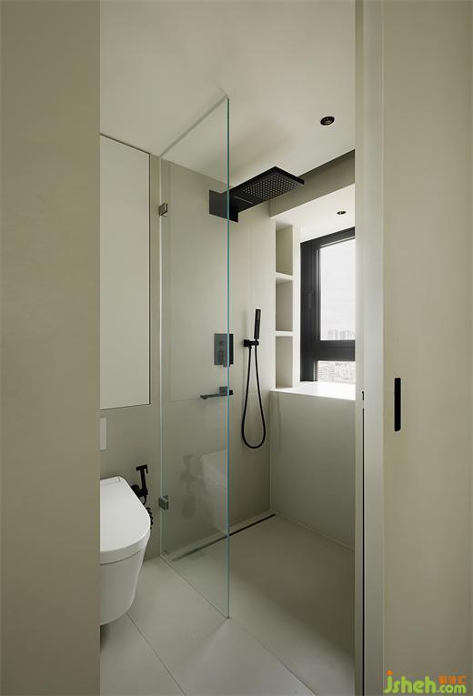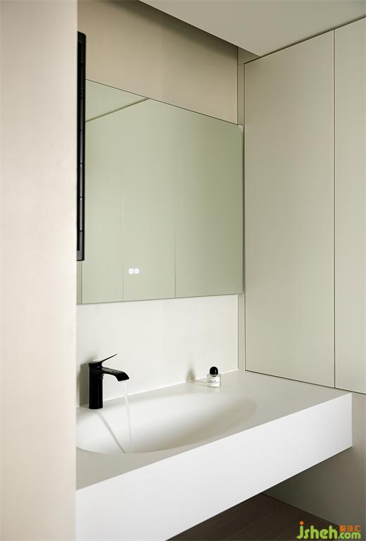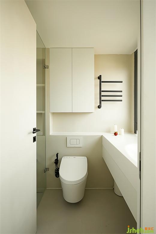 公衛(wèi)改動(dòng)門的位置和形式,境相設(shè)計(jì)為一扇移門為增加浴室柜的長(zhǎng)度,移門開合不占用空間,更加靈活便捷。