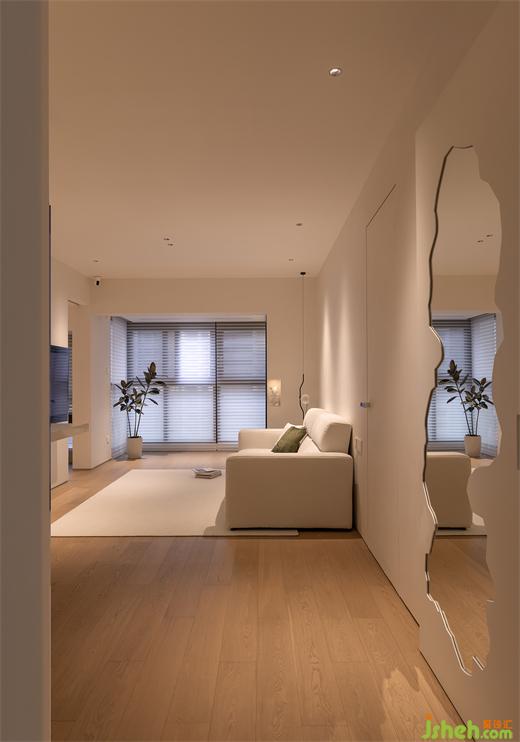 極簡并不意味著空洞蒼白,客廳聚焦空間細(xì)節(jié)處理和材質(zhì)的運(yùn)用,與沙發(fā)同側(cè)的主臥,采用用隱形門,開辟出主臥、進(jìn)門衣帽間的交互洄游動線,一并聯(lián)動玄關(guān)與客廳,令小家更添生趣。#客廳#隱形門#洄游動線