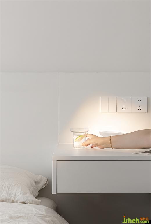 床頭背板同樣內(nèi)置燈帶,開燈后頓覺溫馨感,懸挑的天然白洞石床頭柜,家裝設(shè)計將左側(cè)墻垛與床頭背板整合,支持隨手置物,又減少了對床頭采光的遮擋。#主臥#燈帶#床頭柜