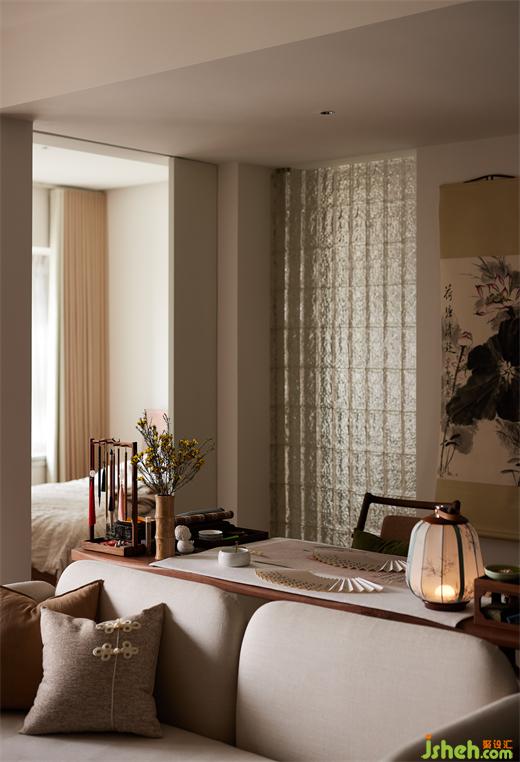 次臥:兩個(gè)次臥打通,合并為多功能室,作為辦公、古箏、臨時(shí)休息區(qū)。大開(kāi)間玻璃移門(mén),視覺(jué)通透,拆除客廳墻體內(nèi)退,房門(mén)打開(kāi)后,客廳與次臥視覺(jué)得到最大限度延伸。