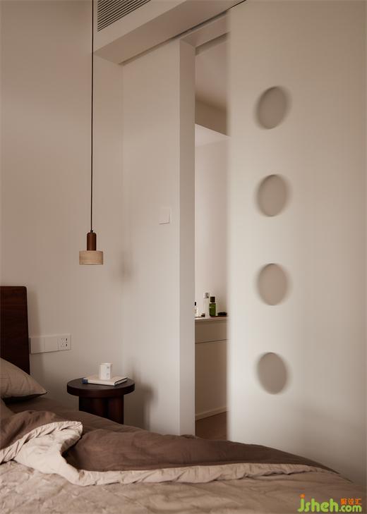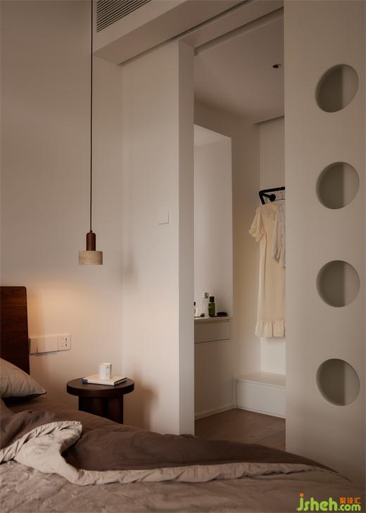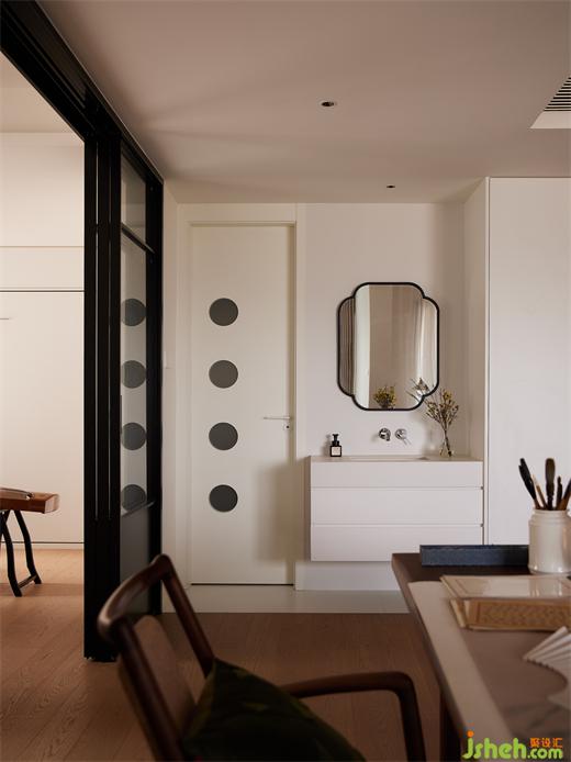 主臥:主臥房門(mén)一門(mén)兩用,衛(wèi)生間改為掛衣區(qū)與梳妝臺(tái),房門(mén)打開(kāi)后,儼然變成了一個(gè)大套間,餐廚區(qū)客廳,主臥,次臥,流動(dòng)性動(dòng)線(xiàn)