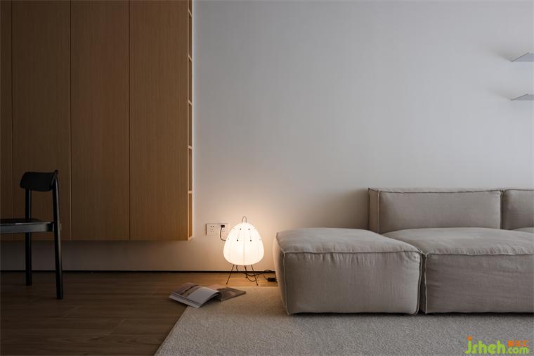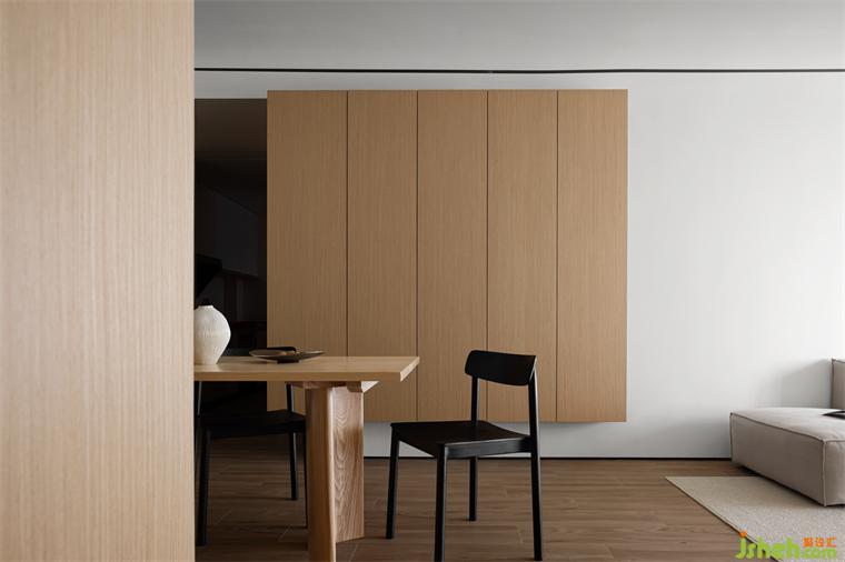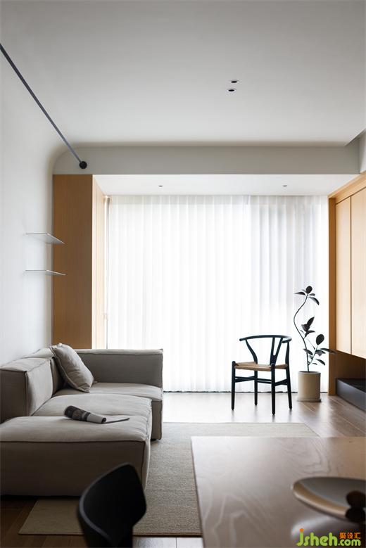 木作為造房子傳承下來(lái)最基礎(chǔ)的材料,回應(yīng)了樸素與自然,裝修設(shè)計(jì)而原木與陽(yáng)光是整體空間節(jié)奏的連接。為了讓視覺(jué)上有更好的體驗(yàn),我們將陽(yáng)臺(tái)與客廳合并,保持穿透外也讓客廳空間更顯大。