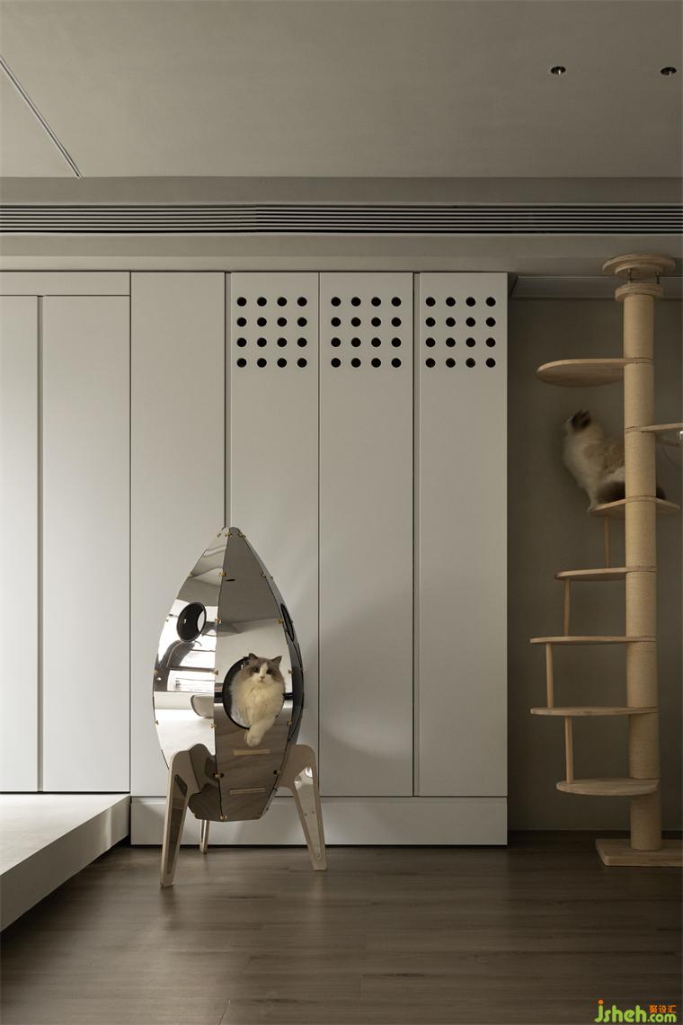 從理性出發(fā)回歸到感性,在利落明快的收納柜注入新的功能可能性,將沉穩(wěn)與靈動結(jié)合,長沙裝修設(shè)計為貓貓留下立體主義的移動空間,予以場域收房有度的活潑感。