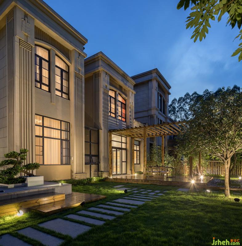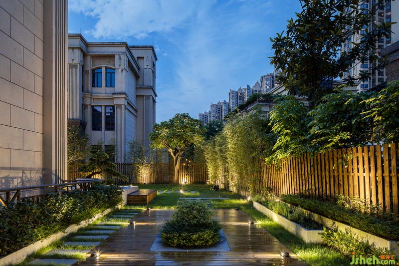 本項(xiàng)目擁有很大的前后花園,可以實(shí)現(xiàn)景觀與建筑相互融合。花園的入口以青石板與鵝卵石搭配滿鋪?zhàn)鳛榍白?,水泥花基上高低有層次的綠植與防腐木圍欄的竹子相互搭配,餐廳通往花園的區(qū)域做了一個(gè)抬高的防腐木地臺(tái),讓整個(gè)空間層次感更強(qiáng)。幕色降臨,燈光的明暗搭配,虛實(shí)的結(jié)合,豐富了景觀的層次,在花園中體現(xiàn)得淋漓盡致。