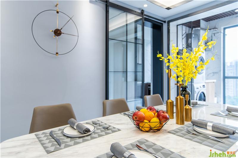 戶型改造上,重點(diǎn)是門廳,改造前由于是帶裝修的精裝房,過道兩側(cè)還帶有屏風(fēng),在一進(jìn)門的時(shí)候會(huì)有壓抑的感覺。在做設(shè)計(jì)改造的時(shí)候決定打掉了一小部分電視背景墻,由于衛(wèi)生間會(huì)對(duì)著大門,在風(fēng)水上是不好的,因此決定直接把墻變成木飾面裝飾墻,而衛(wèi)生門則改成隱形門,在功能上不變,但起到裝飾的作用,一進(jìn)門前廳給人的視覺也寬敞了不少。在主要的客餐廳以及陽臺(tái)空間區(qū)域中,也進(jìn)行了合理劃分,儲(chǔ)物空間合理放置。開放陽臺(tái)改造成封閉陽臺(tái),將原始生活陽臺(tái)和大陽臺(tái)打通,南北對(duì)流,大大增加采光及使用面積??蛷d設(shè)計(jì)了一個(gè)酒吧區(qū)域,業(yè)主夫婦二人熱愛酒文化,而且與進(jìn)門口處的鞋柜做成L型柜,解決了轉(zhuǎn)交位的缺陷;客餐廳一般是人們待著比較長時(shí)間的地方,改造后將大大增加了空間利用率。主要公共區(qū)域完全打通,獲得極致的室內(nèi)空間觀感。而本項(xiàng)目還有一個(gè)改造重點(diǎn),原本帶有三個(gè)衛(wèi)生間,但空間都很小,根據(jù)業(yè)主的需要,因此把主衛(wèi)及公衛(wèi)打通,變成一個(gè)大主衛(wèi),實(shí)用性增大,而且對(duì)門的臥室改成衣帽間,業(yè)主二人擁有屬于自己完完整整的私密空間,減少公共過道區(qū)域,使空間利用得更加極致。