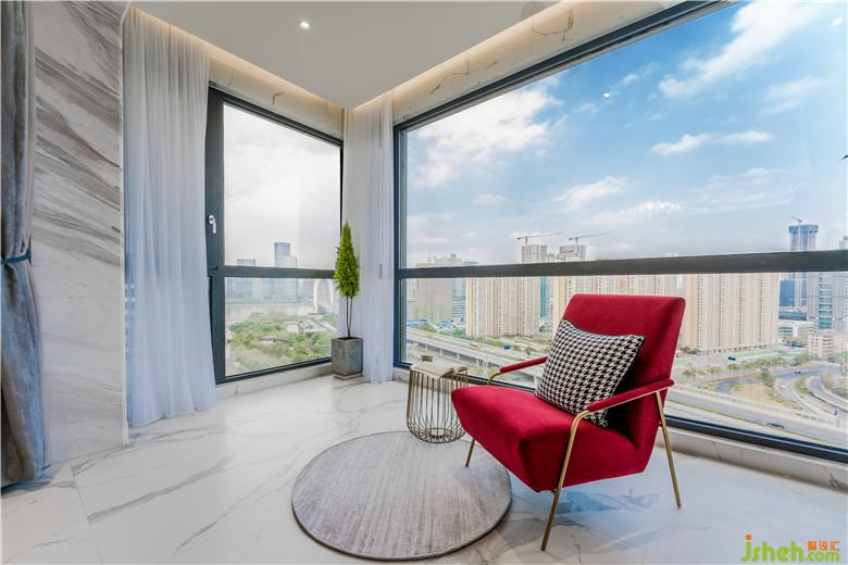 眼尖的你會發(fā)現(xiàn)門框也是大理石紋理哦~這也是Johnny哥的小心機哦,為的是讓整個客廳看起來更整體。門框的設(shè)計自然而然的成為半開放陽臺,既能讓客廳與陽臺空間共存,又能讓大家一眼看出功能分區(qū),一舉兩得。