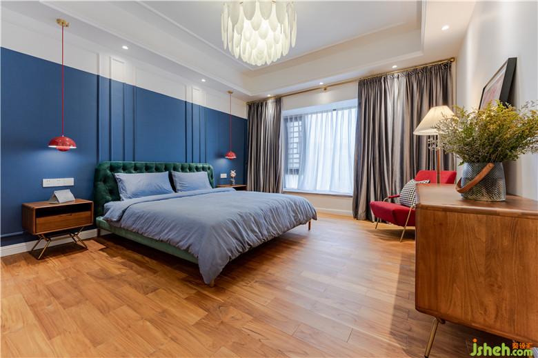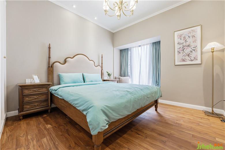與兒童房、主人房的跳色亮色相比較,長輩房的主打色與墻體色更為淡雅一點,選擇了卡其色,長輩房需要打造安眠環(huán)境。配合床頭柜與床復(fù)古田園感。定制的衣柜也是偏素雅。