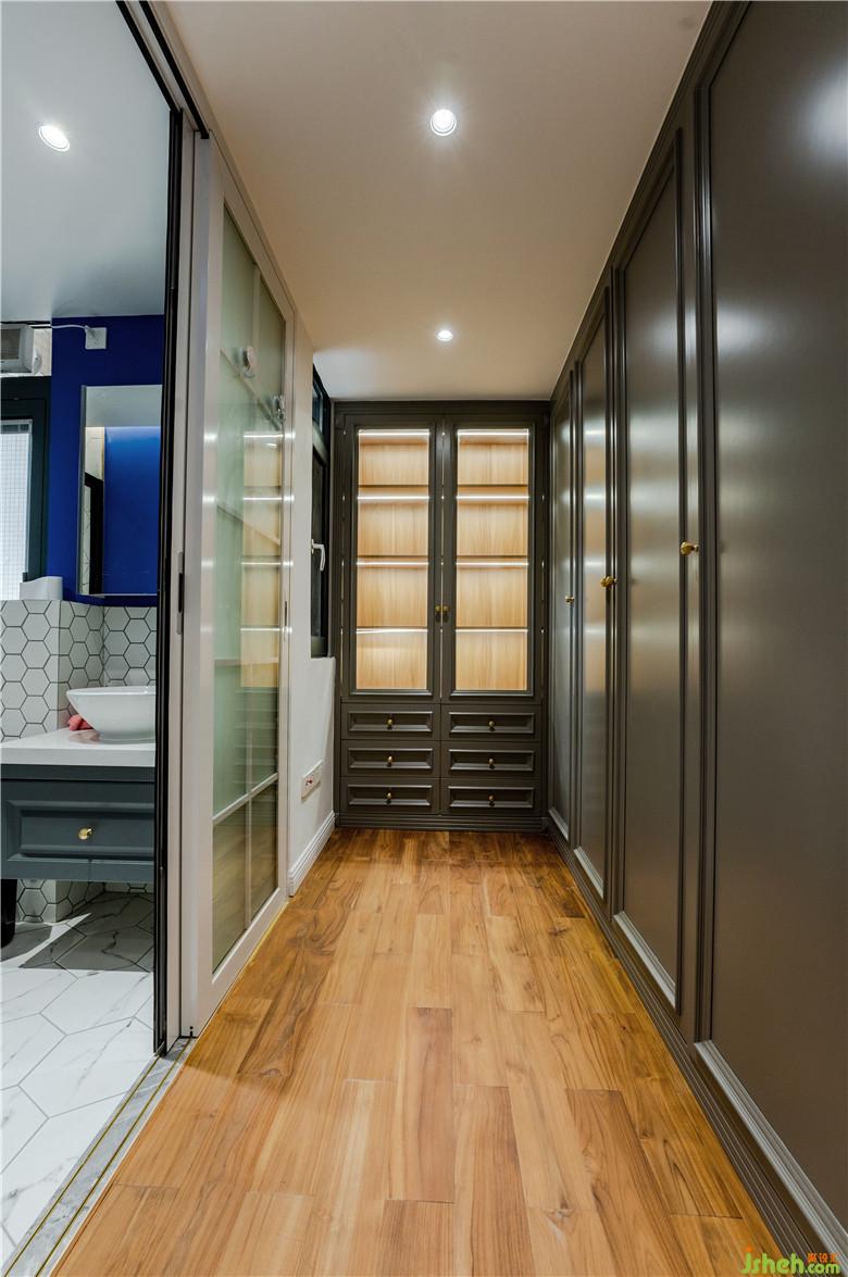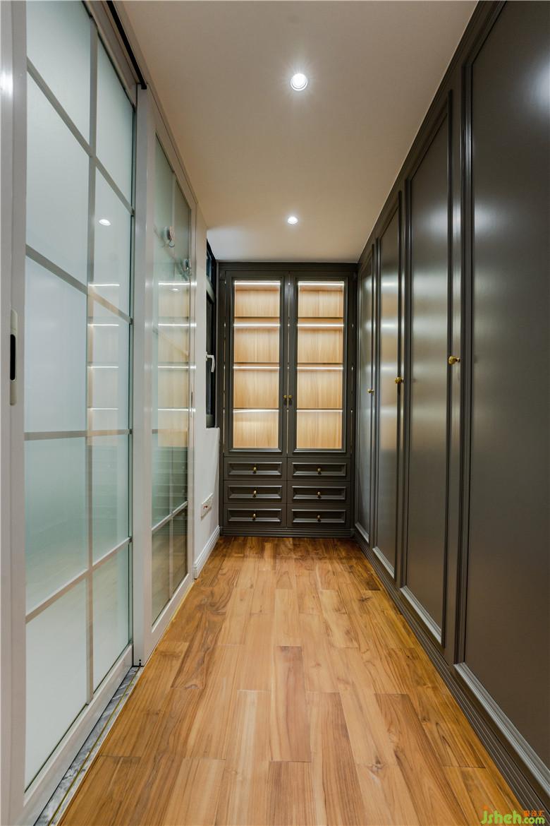 推拉門設(shè)計節(jié)省空間不止,還充當(dāng)更好的阻隔。衣帽間原本格局結(jié)構(gòu)是衛(wèi)生間,把衛(wèi)生間改為衣帽間,對于三口之家,減少衛(wèi)生間的個數(shù),騰個空間做衣帽間更實用呢!中灰色的烤漆衣柜,上面帶有特意制作成帶有線條的柜門板,配上金色的柜門把手非常精致!