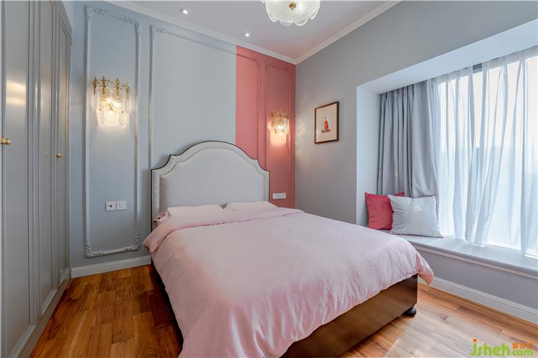 女兒房。粉色估計是每個小女孩最愛的顏色吧,把它用在兒童房最適合不過了,公主般的床頭燈也是好看得很。粉色選擇了比較耐看深一點的粉色,三分之一的粉色與淺灰色對比撞色,個性且特別,孩子長大了也依然不會覺得幼稚的顏色搭配選擇,非常耐看。